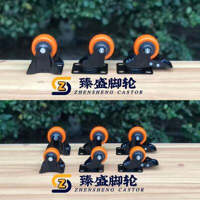 2 Inch Double Ball Bearings PVC orange Wheel Double Brake Caster